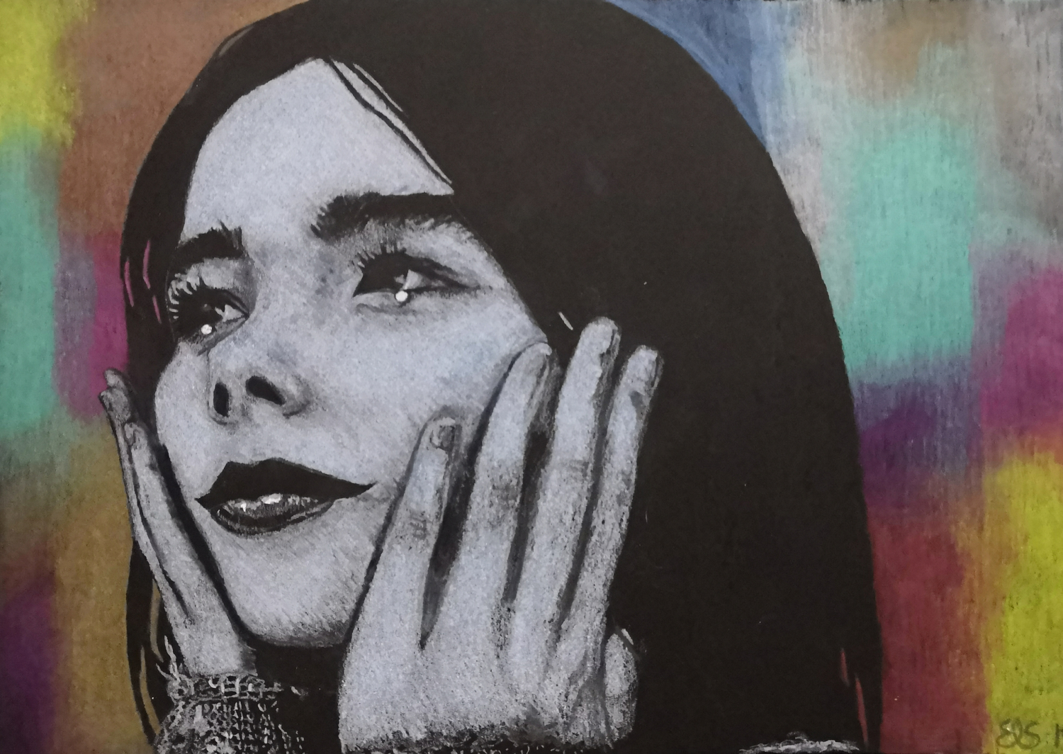 Björk Drawings Björk 2019, Derwent Metallic pencils, Koh-I-Noor Polycolor pencils and white gel pen on black A4 paper. Aiheeseen liittyy