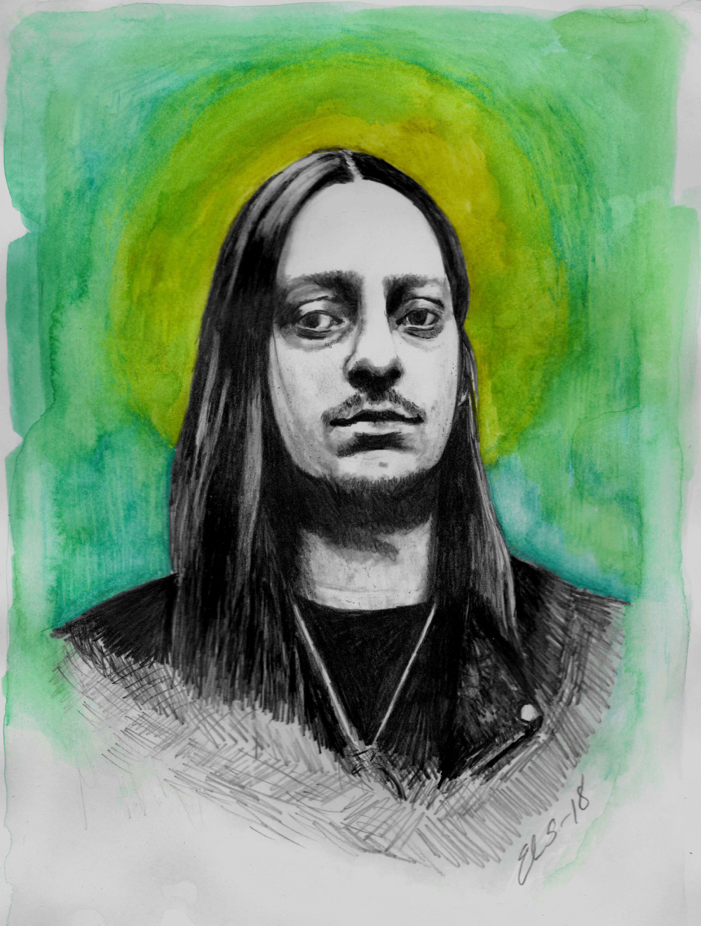 Fenriz 2018, pencils and Derwent Inktense pencils on A4 paper.